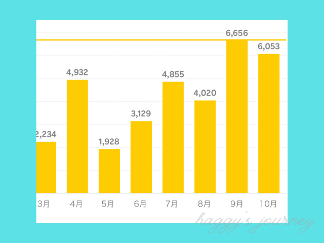 下のグラフは私の2023年10月までのポイント獲得実績。
